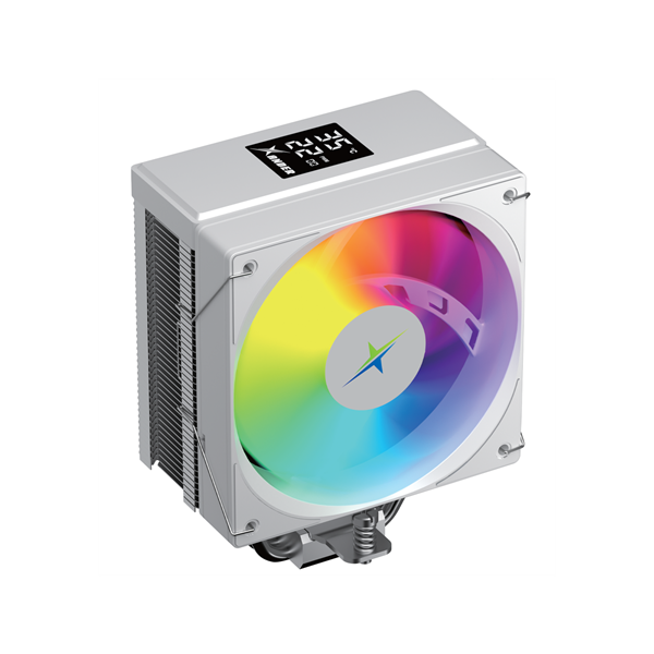 Single Tower Air CPU Cooler with Digital Display Top Cover, 120mm ARGB PWM Fan, 4 Direct Contact Heat Pipes, White Color Version.