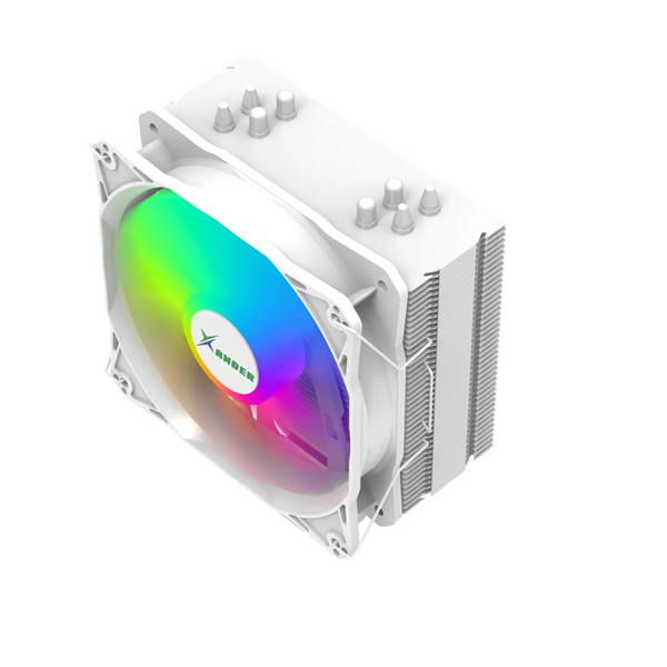 Single Tower Air CPU Cooler with Top Cover Design, 120mm ARGB PWM Fan, 4 Direct Contact Heat Pipes, White Color Version.
