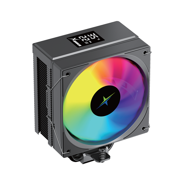 Single Tower Air CPU Cooler with Digital Display Top Cover, 120mm ARGB PWM Fan, 4 Direct Contact Heat Pipes, Black Color Version.